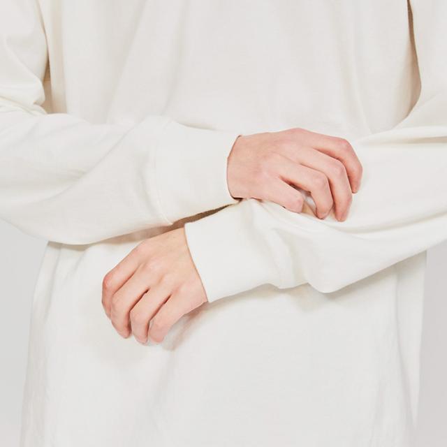 脇に縫い目のない丸胴編み、タグレス仕様でストレスフリーの着心地。