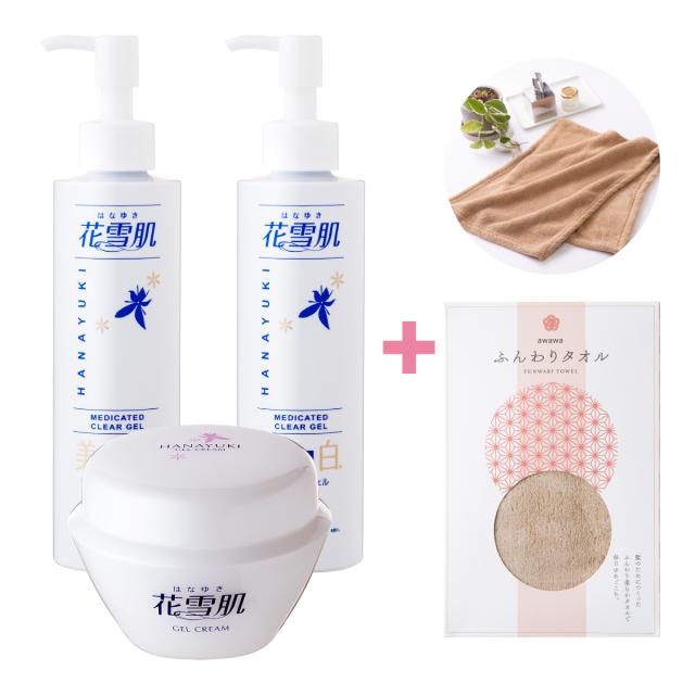 オールインワンゲル はなゆき 花雪肌 ジェルクリーム×1個・薬用美白クリアジェル×2本セット+awawaふんわりタオルプレゼント 医薬部外品【BIG3】【レビューを書いてポイント+3%】