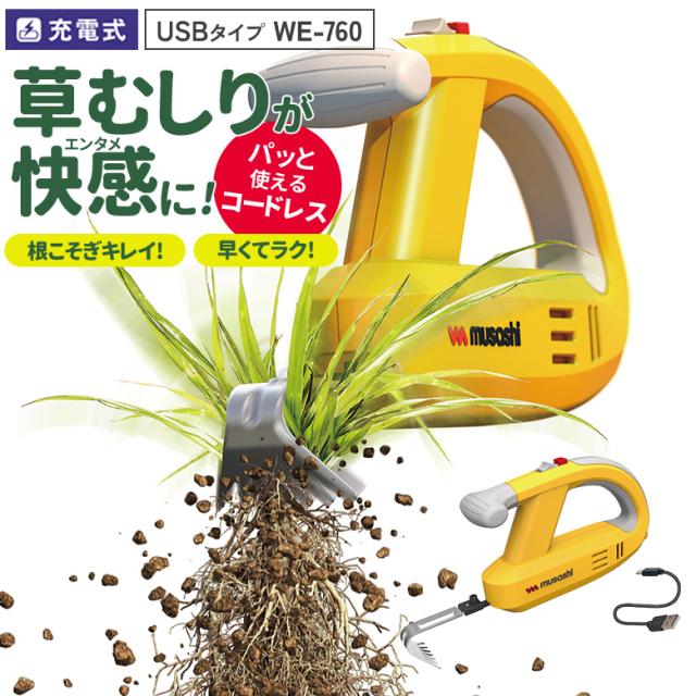 【50%引き】 草刈り機 雑草抜き ムサシ 充電式 除草バイブレーター USBタイプ(WE-760) 草取り 草むしり 草抜き 振動除草 除草機 ガーデニング 園芸用品 雑草 畑 庭 手入れ 花 ガーデン DIY コードレス