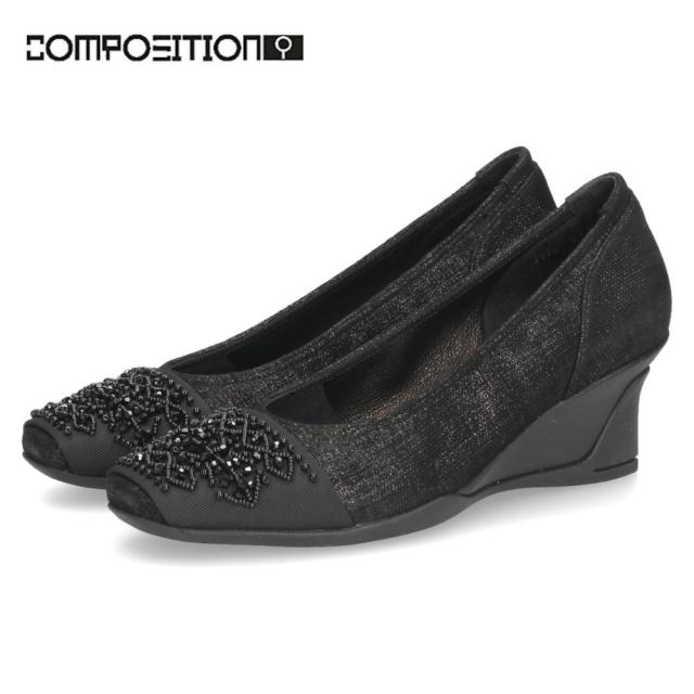 パンプス レディース 黒 本革 靴 通勤 ウェッジソール スクエアトゥ コンポジションナイン ビーズモチーフ コンフォートパンプス COMPOSITION9 2954