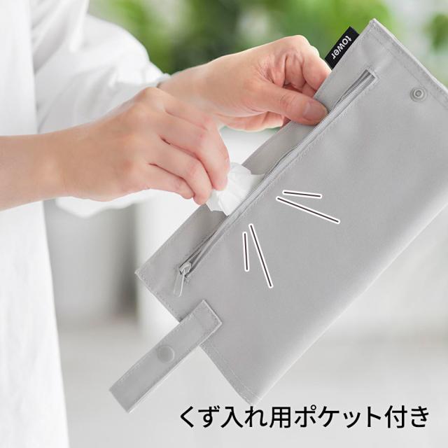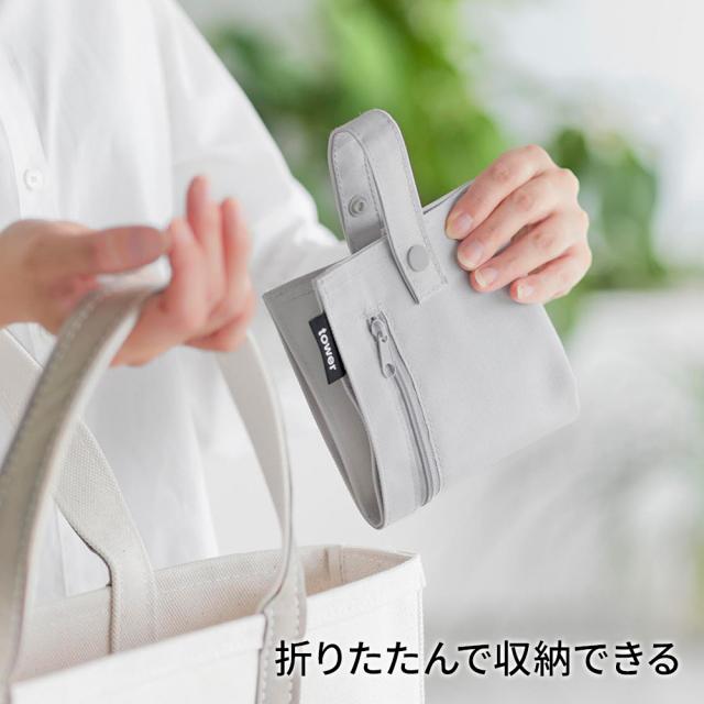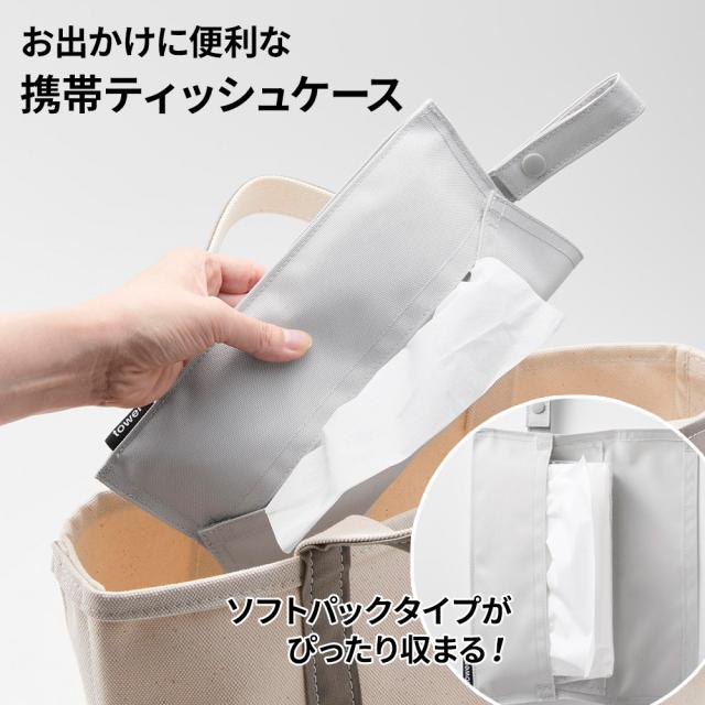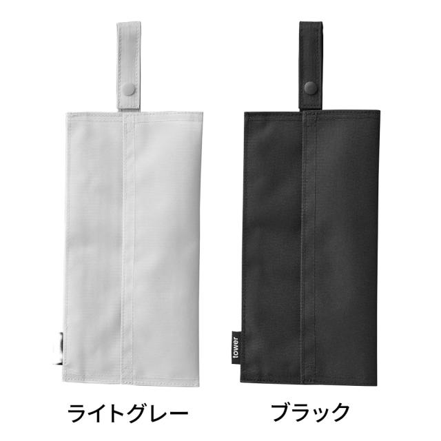 山崎実業 tower タワー くず入れ付き折りたためる携帯ティッシュケース ライトグレー 10735/ブラック 10736 | テッシュケース 吊り下げ 携帯用 車 ベビーカー かばん おりたためる コンパクト ソフトパック対応 ポータブル おしゃれ 収納