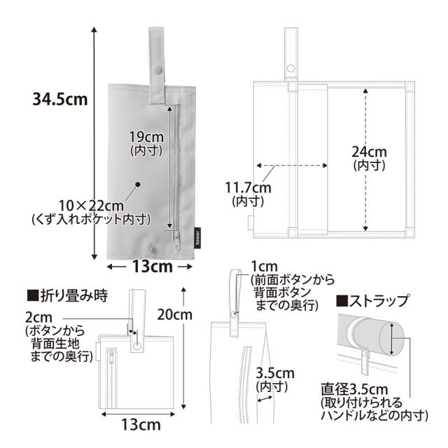 内寸サイズ(約):収納部/幅11.7×奥行3.5×高さ24cm くず入れポケット/幅10×高さ22cm