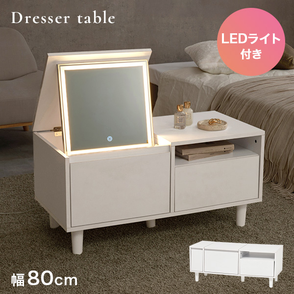 ドレッサー テーブル ドレッサーテーブル LEDライト付き 白 おしゃれ 収納 大容量 コンパクト 80cm ローテーブル デスク 机 コスメテーブル 女優ドレッサー センターテーブル LED ライト ホワイト