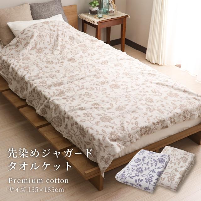 タオルケット シングルサイズ 約135×185cm 先染めジャガードタオルケット 甘撚り 綿100% 洗濯可能 花柄 可愛い おしゃれ 春夏用 DSTK-265