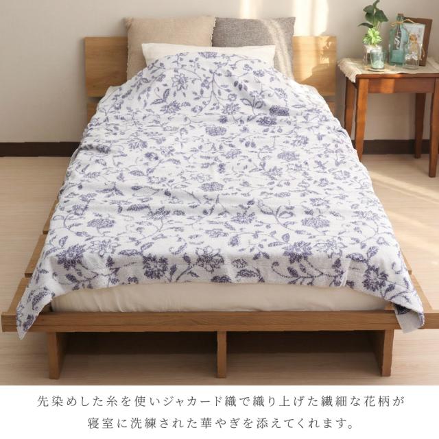 先染めの糸を使用し色鮮やかで繊細に仕上げられた花柄のタオルケットは、寝室を上品で華やかなお部屋に演出してくれます。