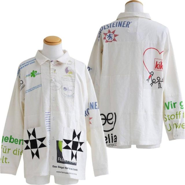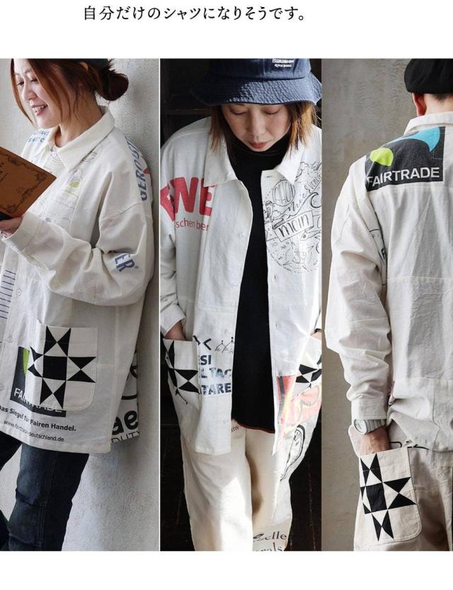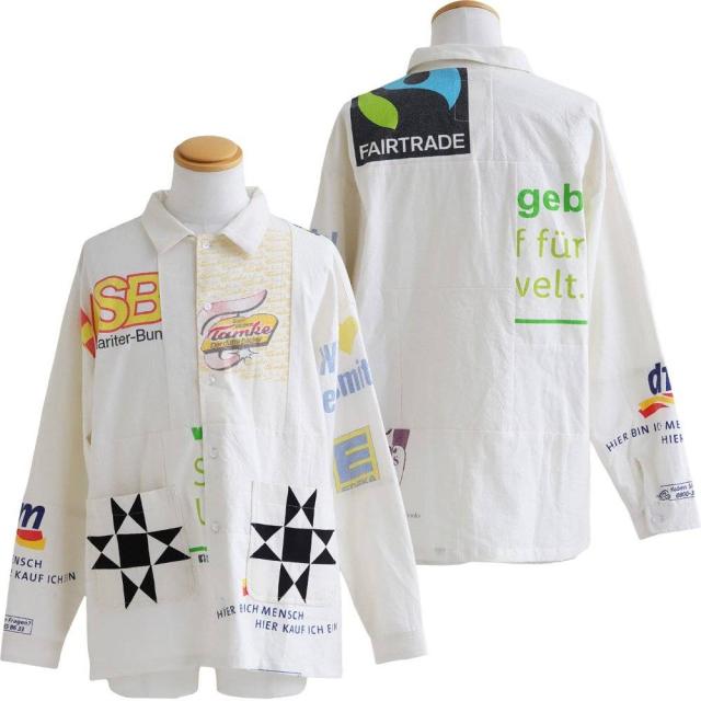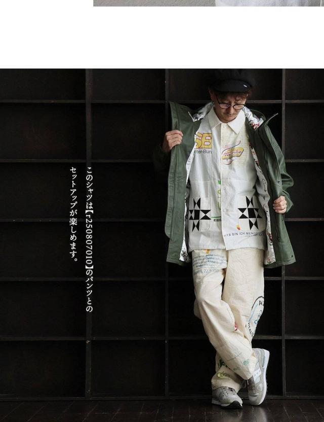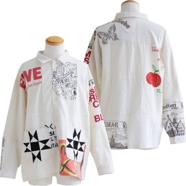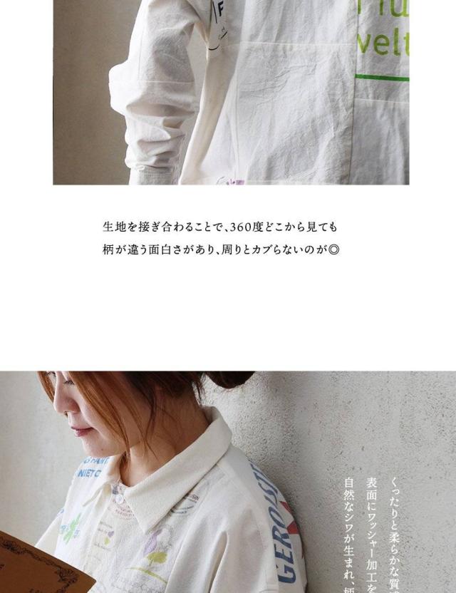 ・これはプリントが全て異なる生地を接ぎ合わせたリメイクシャツ。
