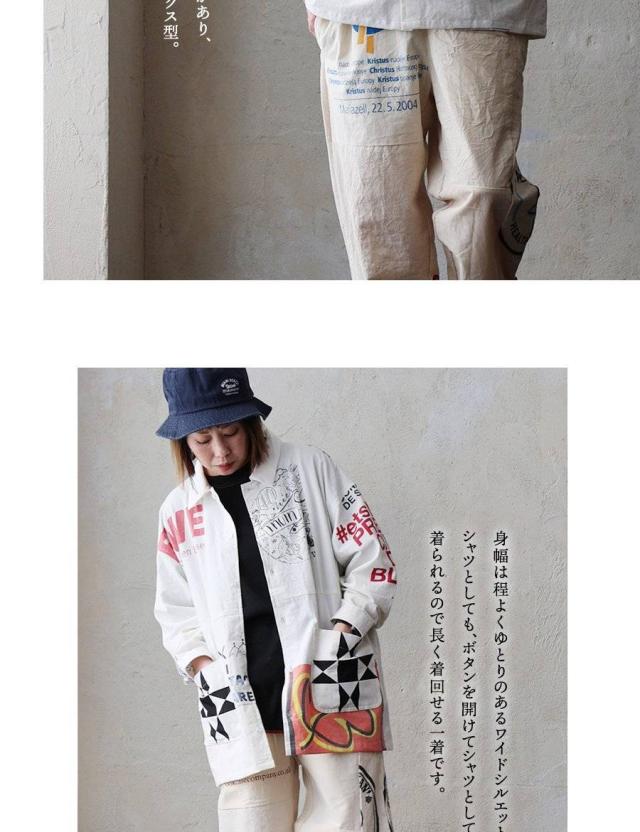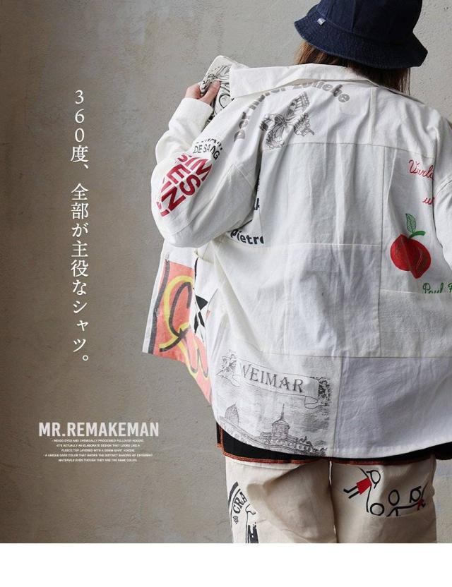 MR.REMAKEMAN ミスターリメイクマン シャツ 長袖 メンズ レディース 総柄 リメイク 薄手 軽い シワ加工 ロゴ プリント 大きいサイズ 体型カバー カジュアル レトロ リメイク セットアップ可 パティ