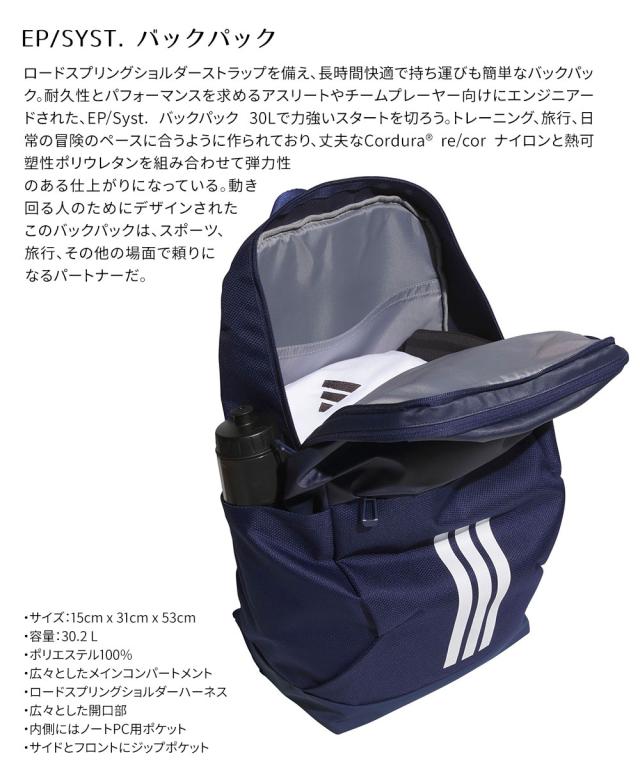 アディダス EP/Syst. バックパック 30L リュック ユニセックス 大容量 通勤 通学 部活 A4対応 PC収納 スポーツ トレーニング デイリー カジュアル 丈夫 軽量 撥水仕様 人気 シンプル 黒 ブラック 定番 adidas HM227