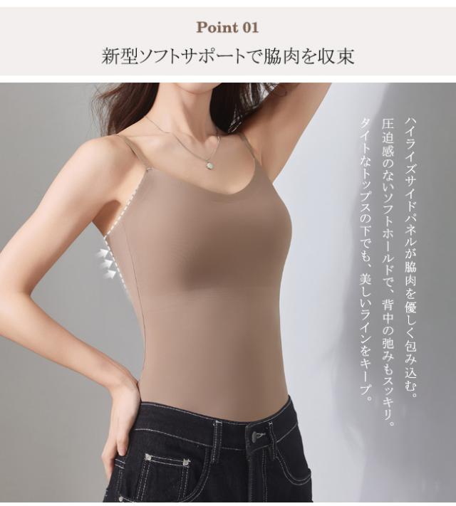 薄手のブラウスの下に着るだけで、脇肉も背中の肉もすっきり隠せるキャミソール。