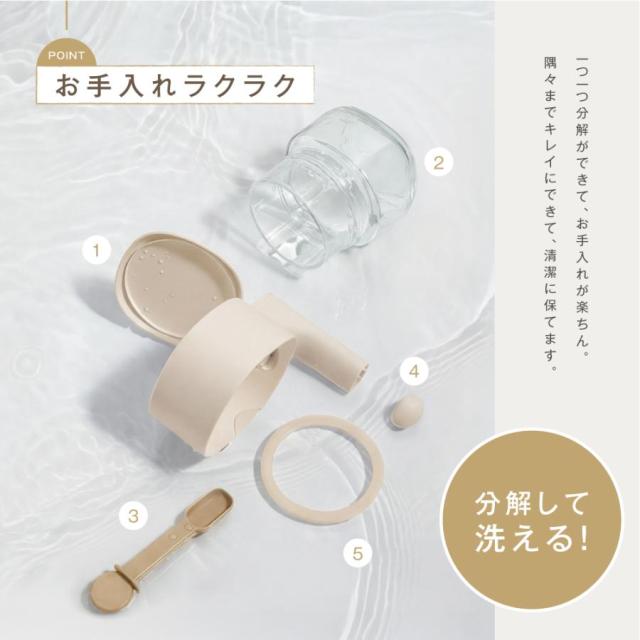 【安全な食品グレード】容器は耐熱・耐衝撃性のガラスボトル。調味料のニオイ移りを防ぐ効果があり、いつもきれいな容器をキープします。一つ一つ分解ができて、お手入れが楽ちん。隅々までキレイにできて、清潔に保てます。