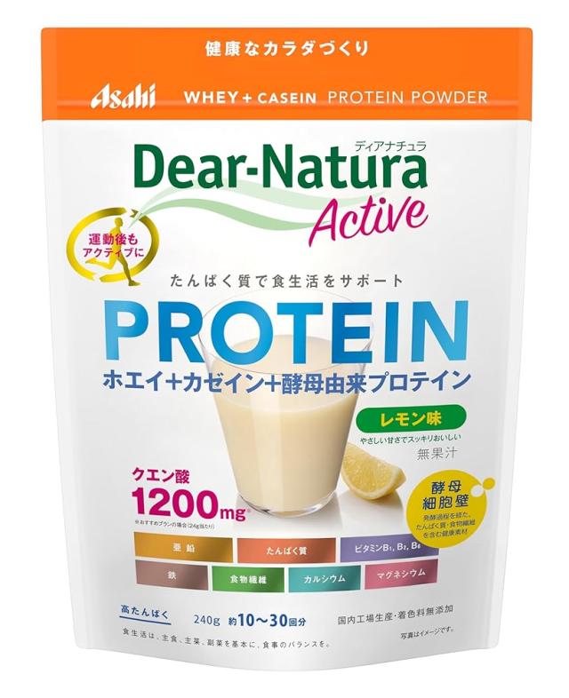 ディアナチュラアクティブ ホエイ+カゼインプロテイン レモン味 240g 粉末 プロテイン アサヒ Dear-Natura 国内工場で生産