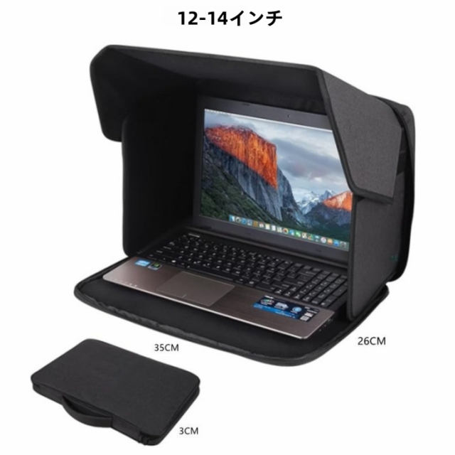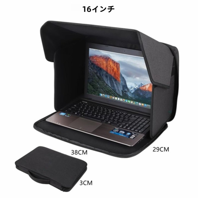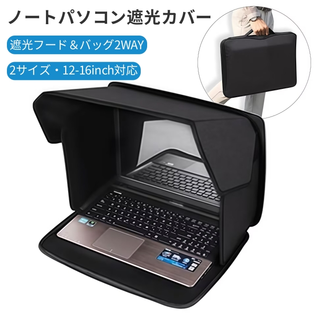 ノートパソコン遮光カバー ノートパソコン用サンシェード パソコンケース 遮光フード 目隠し プライバシーカバー パソコンバッグ PCケース 12-14インチ 16インチ 選べる2サイズ 2WAY