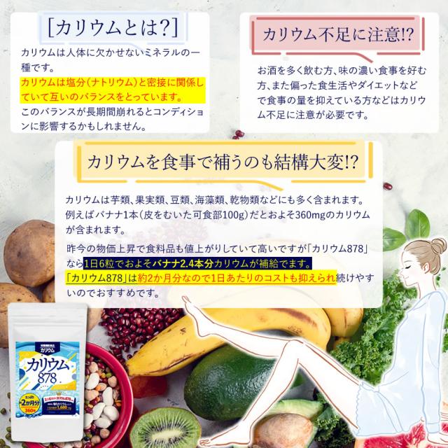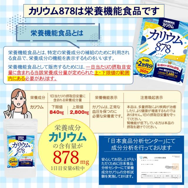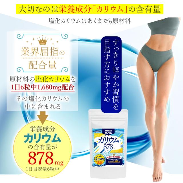 カリウム サプリ 約2か月分 360粒 塩化カリウム 1680mg 高配合 多い 栄養機能食品 カリウム 血圧 正常 保つ 栄養素 不足 補給 塩 塩分 バランス 脚 足 めぐり 健康 ダイエット ミネラル サプリメント カリウム878