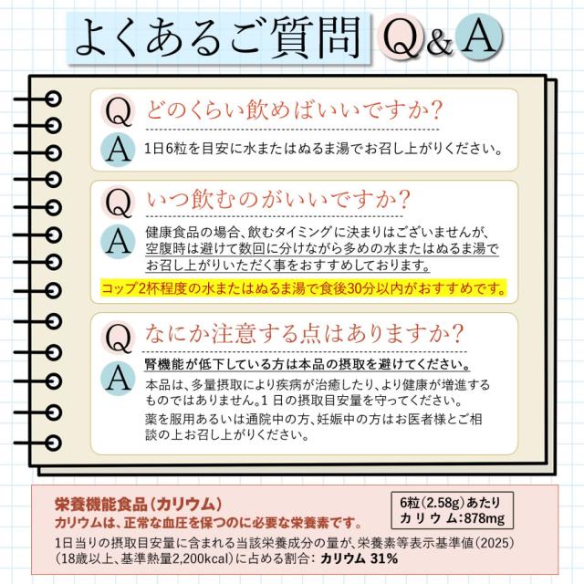 送料無料 大容量 60日分 カリウム足りてますか? 1日6粒中 塩化カリウム1680mg 高配合 栄養成分 カリウム878mg 高含有 塩分が気になる方やムクムク・パンパンでお困りの方へおすすめ!