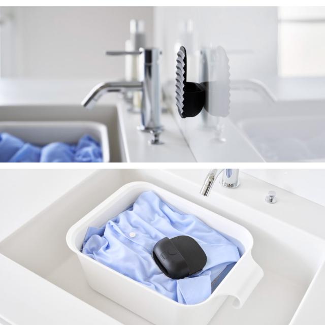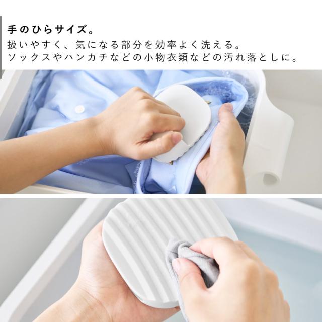 マグネットがつく壁面に簡単設置、浮かせて収納できる部分洗い用の洗濯ミトン。手のひらサイズで扱いやすく、ソックスやハンカチなどの小物衣類の汚れ落としにぴったり。エリや袖口の皮脂汚れなど、気になる部分を効率よく洗えます。