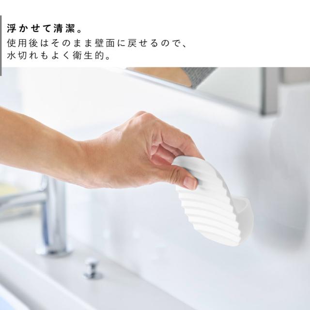 素材はポリプロピレンを使用。適度なコシがあり、しっかり汚れをかき出します。使用後はそのまま壁面に戻せるので、水切れもよく衛生的です。