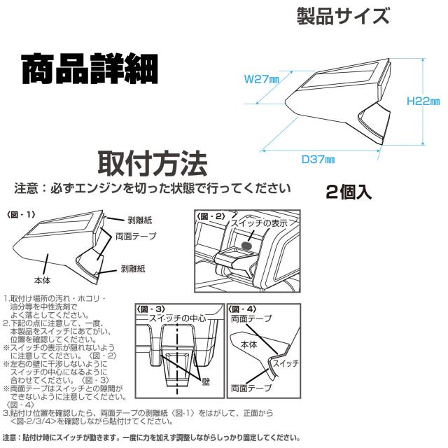 ●JB64系Jimny・JB74系Jimny SIERRAのセンタースイッチの操作性を向上させるスイッチ延長パーツです。 ●室内のパーツに合わせた半光沢メッキを採用しています。 ●両面テープで簡単取付けできます。 ●2個入り |