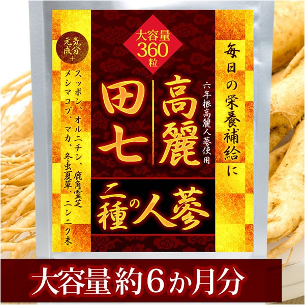 田七 高麗 人参 サプリ 約6か月 360粒 六年根 高麗人参 でんしち こうらい にんじん スッポン 鹿角霊芝 オルニチン メシマコブ マカ ニンニク 冬虫夏草 二種 人蔘 健康 サプリメント