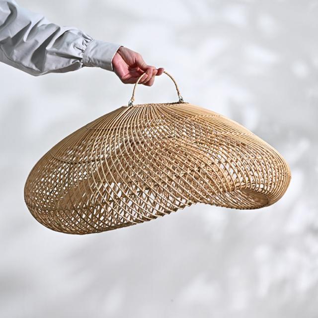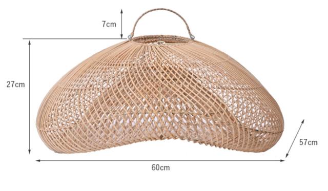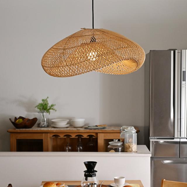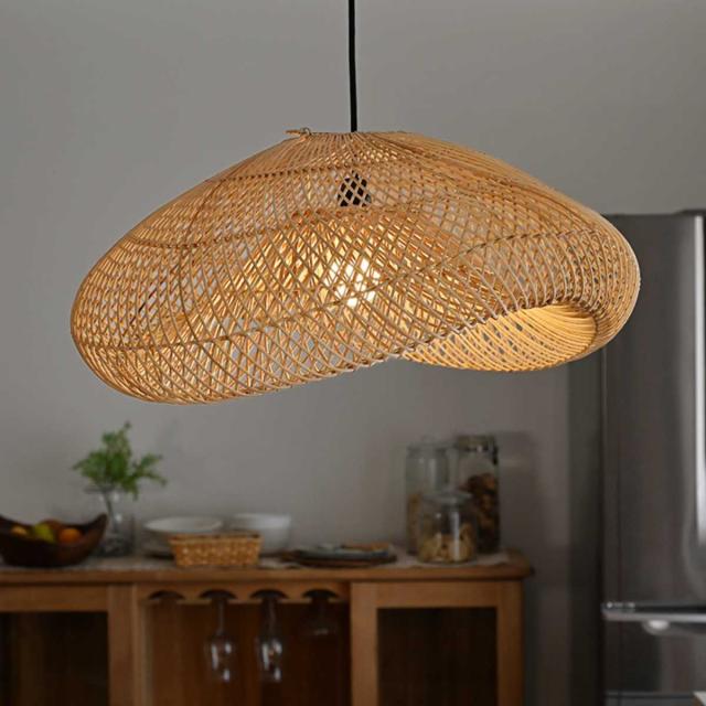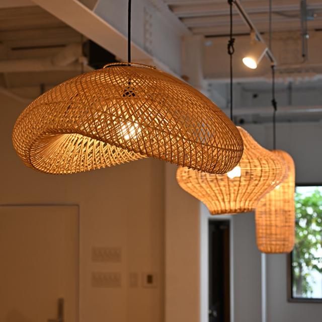 天然素材のラタンで作られた存在感あるランプシェードです。編み目からこぼれる光が、お部屋にやさしい陰影を生み出し、カフェのような落ち着いた空間を演出します。ダイニング・リビング・店舗照明など、空間のアクセントとしておすすめです。