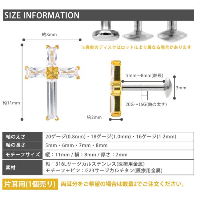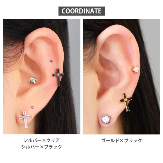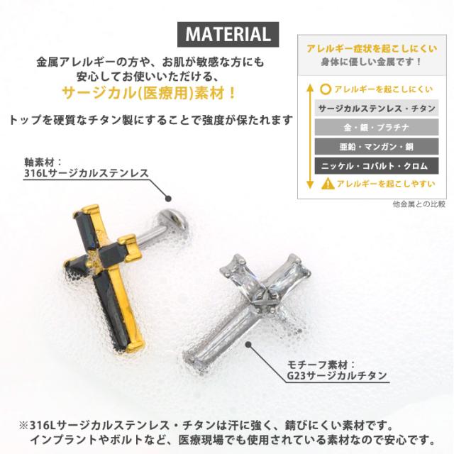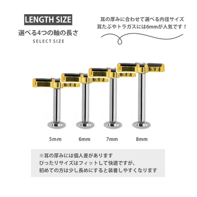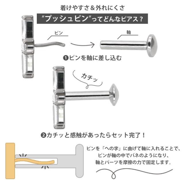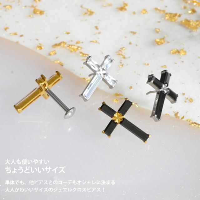 【摩擦の力で外れにくい】つけっぱなしピアス ボディピアス 20G 18G 16G バゲットカットジュエルクロスプッシュピンラブレット トラガス 軟骨ピアス 【片耳用】 【30日間お試し期間あり/返品交換保証】