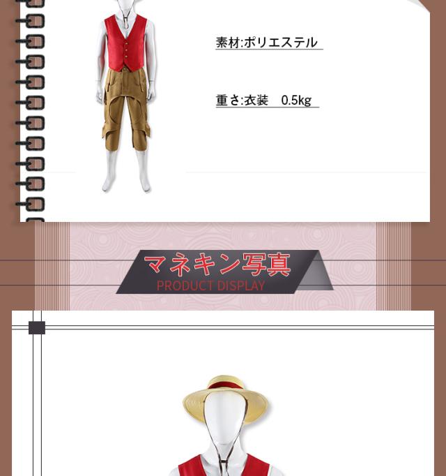 One Piece Season2 ワンピース モンキー D ルフィ アメリカドラマ版 コスプレ衣装 コスチューム cosplay