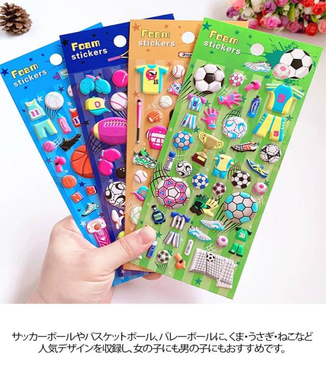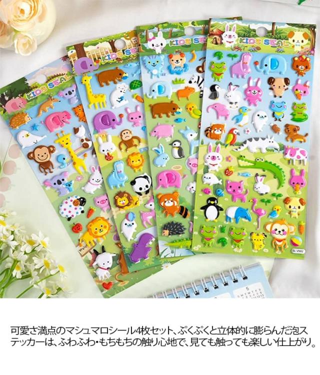 マシュマロシール 4枚セット 3D立体 泡ステッカー スポーツ 動物 ぷくぷくシール ふわふわ サッカーボール バスケットボール バレーボール くま うさぎ ねこ ぷくぷく かわいい シール交換 ぷっくりシール マシュマロシール シール 手帳 立体ステッカー シール帳