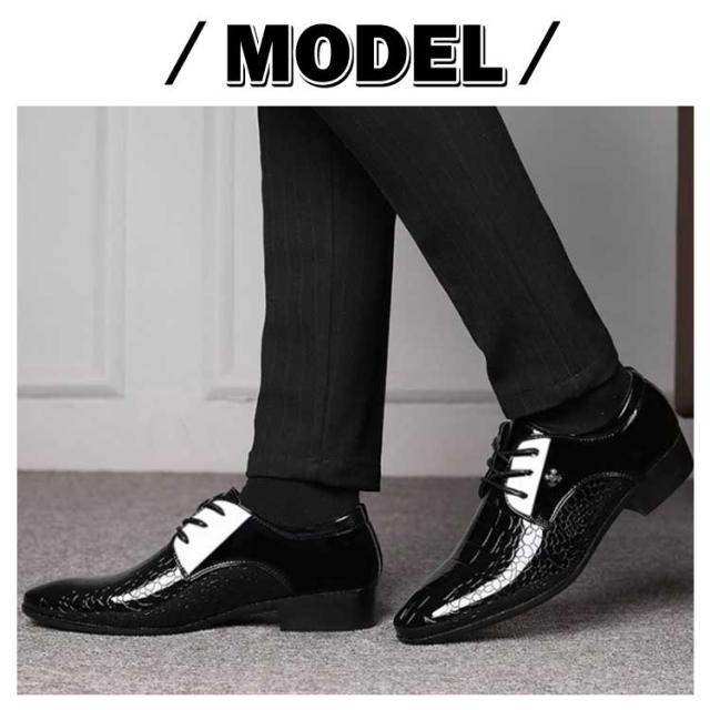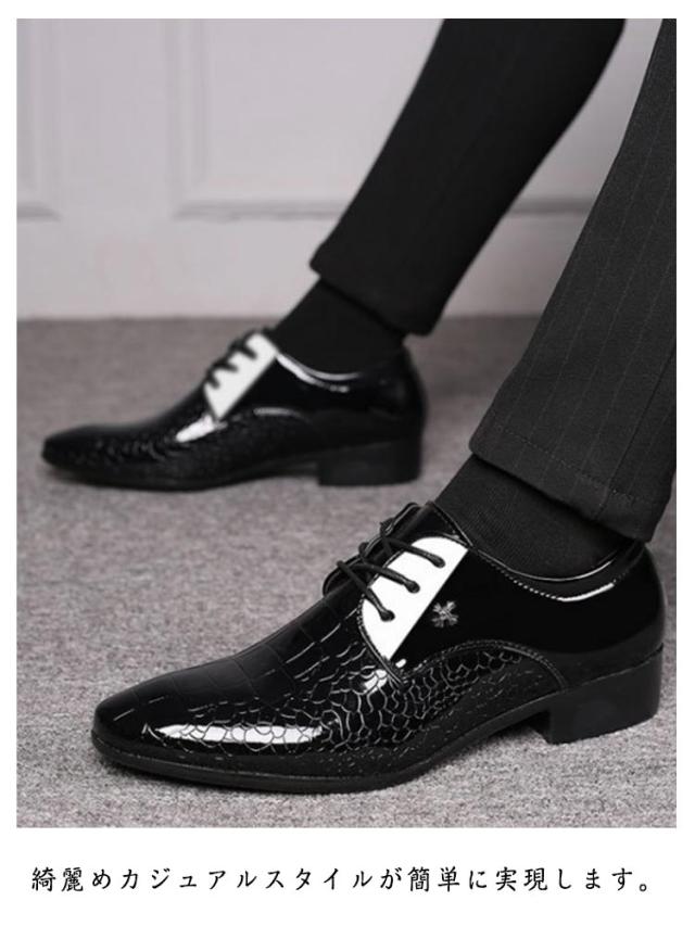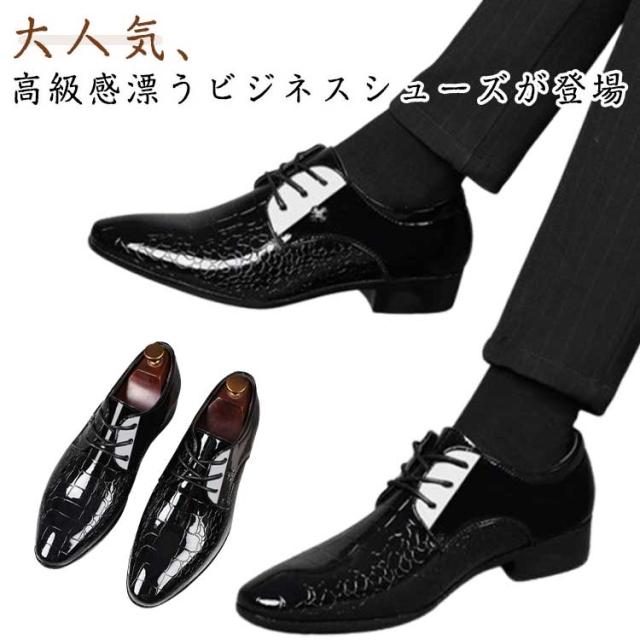 ビジネスシューズ メンズ 光沢感 大きいサイズ エナメル オールシーズン ビジネスシューズ ポインテッドトゥ イギリス風 革靴 フォーマルシューズ 通気性 営業マン 紳士靴 おしゃれ トレンド 幅広 日常 履きやすい 高級感 滑り止め 大人 男性 通勤 ビジネス ギフト プレゼント