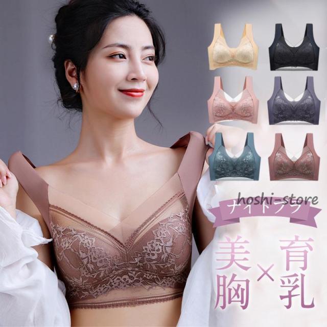 ナイトブラ ブラジャー 30代 40代 20代 ノンワイヤー 美胸 育乳 夜用ブラ 寝る時ブラ リラックス 夜ブラ レース 脇高
