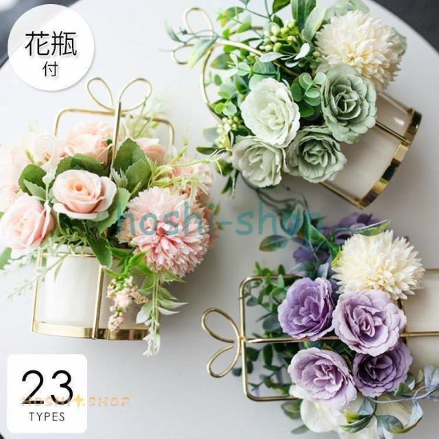 造花 インテリア 花瓶付き フラワーアレンジメント ブーケ パーツ 大きい 仏花 プレゼント ギフト 引越し祝い 結婚祝い 退職祝い アートフラワー