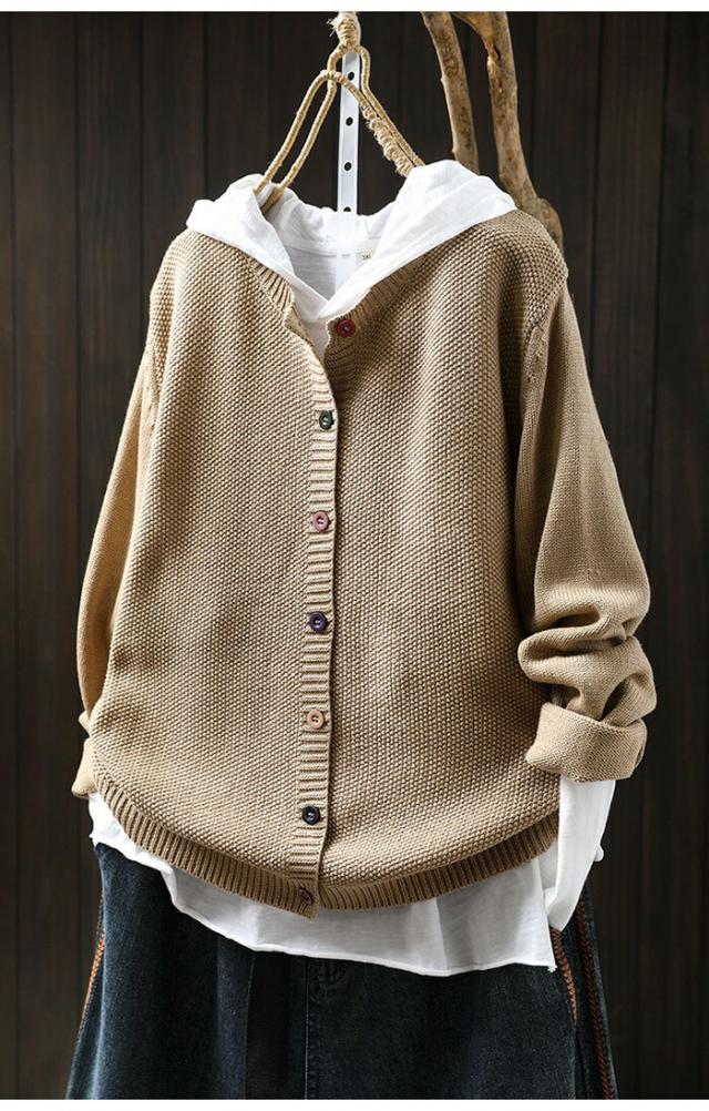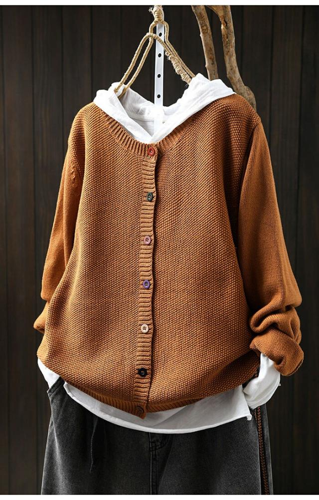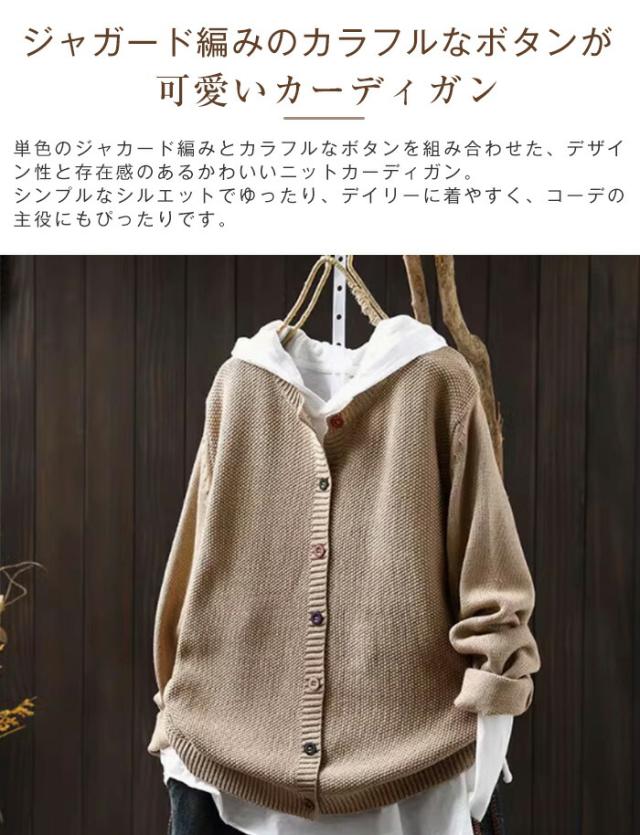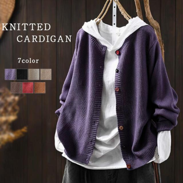 レディース 春 秋 冬 秋冬 長袖 コットンニットカーディガン カーディガン クルーネック ニット ゆるカーディガン ニットカーデ 羽織り ゆったり シンプル カジュアル 大人可愛い 女性 無地