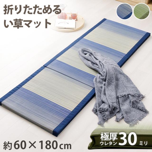 い草マット ごろ寝マット 折り畳み い草 マットレス 夏 長座布団 「 ラーデ 折りたたみマット 」 約60×180cm 畳マット 昼寝マット 30mm厚ウレタン 三つ折り フローリング対応