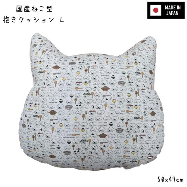 国産ねこ型抱きクッションL 50x47cm しゃもじねこ ふっくらふわふわ抱き心地 かわいいねこ顔シルエット 日本製