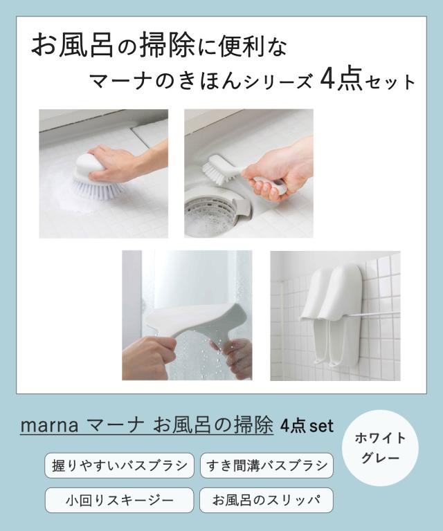 marna マーナ お風呂の掃除 4点セット W671 W672 W677 W678 ( バスブラシ 風呂清掃 バス清掃 掃除 清掃 床 壁 バス用品 掃除用具 タイル お風呂 ブラシ たわし グレー ホワイト )