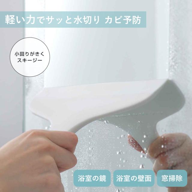 浴室の鏡や壁面を軽い力でサッと水切りできるスキージーです。浴室に残りがちな水分を切り、水垢やカビの予防ができます。リビングなどの窓掃除にも使える便利なアイテムです。