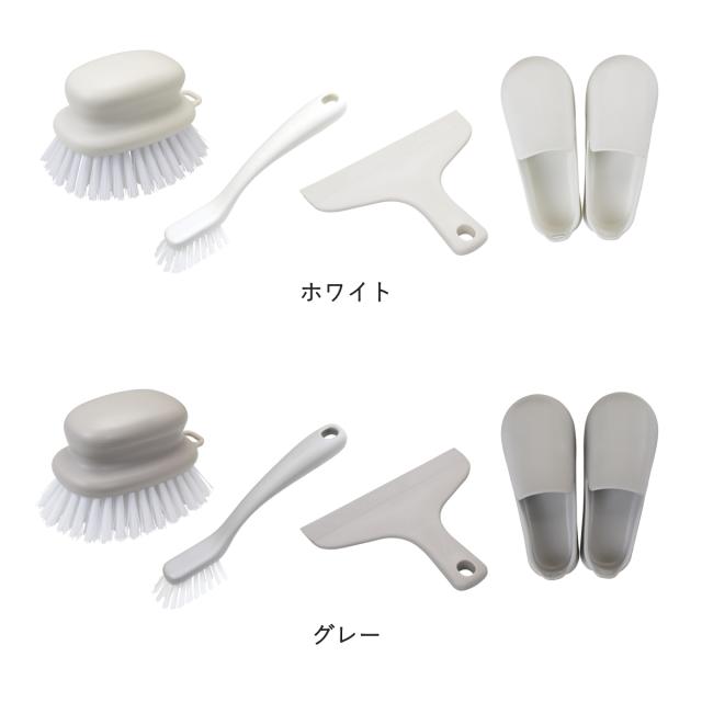 | 内容量 | 4点セット(握りやすいバスブラシ、すき間溝バスブラシ、小回りスキージー、お風呂のスリッパ) |