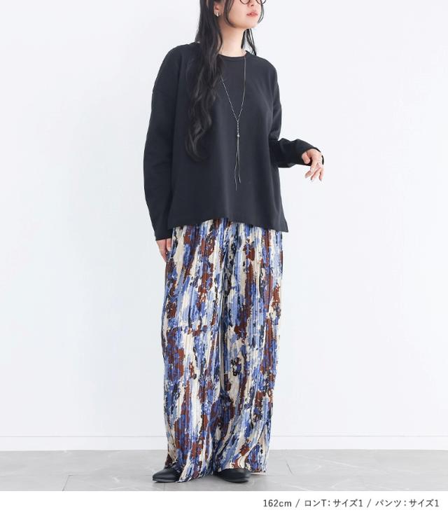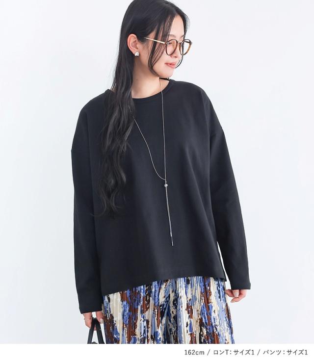 ロンT レディース トップス 長袖 カットソー バスクコットン コットン100% レイヤード 重ね着 Tシャツ プルオーバー クルーネック 上品 きれいめ ナチュラル ミディ丈 ミドル丈 無地 綿100% バスクコットン100% おうちで洗える 春 秋 冬 ロングシーズン カジュアル シンプル オフィス・ビジネス Sサイズ Mサイズ Lサイズ LLサイズ 3Lサイズ XLサイズ 10代 20代 30代 40代 50代 60代 低身長 高身長 プリーツパンツ ロング ボトムス ワイドパンツ セルフカット ウエストゴム ポケット付き 調節可能 体型カバー パンツ ロングパンツ ストレッチ ロング丈 マキシ丈 フルレングス 10分丈 調節できる 調整可能 プリーツ ウエスト紐 総柄 配色 着回し ポケット モード キレカジ フェミニン ガーリー 可愛い系 ゆったり ゆる 楽ちん ストレスフリー 動きやすい ぽっちゃり 大きいサイズ プラスサイズ ブラック 黒 マルチ 202603 2点セット プレゼント 福袋 コーディネートセット コーデセット 中身が見える福袋 上下セット ギフトセット[ID]11cp046