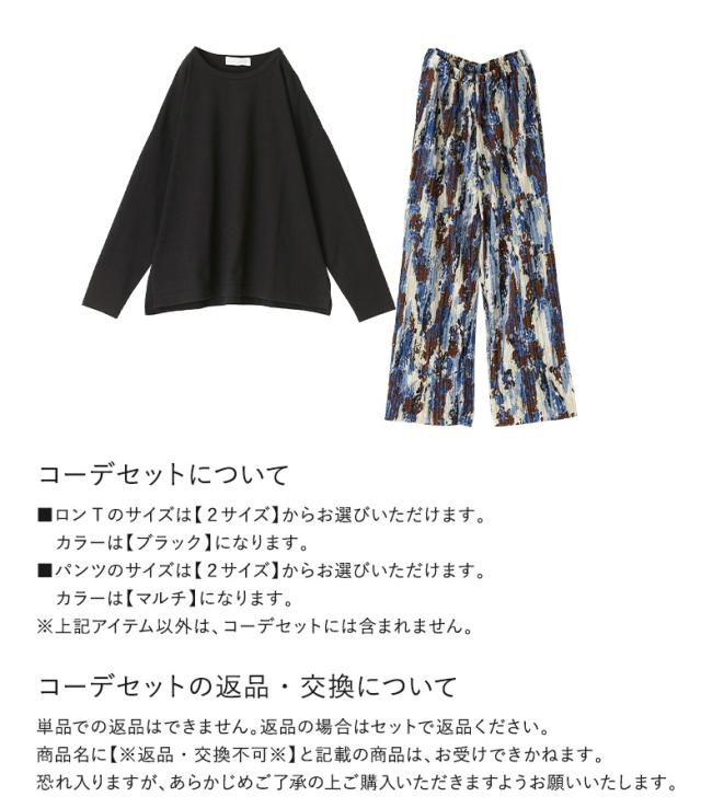 『バスクコットンロンT×セルフカットプリーツパンツコーデ2点SET』【メール便不可】【20】[2点コーデセット 2026 レディース ロンT トップス 長袖 カットソー バスクコットン プリーツパンツ ボトムス ワイドパンツ]