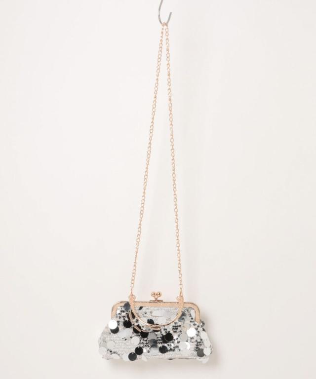 パーティーシーンの胸元や手元に、華やかなアクセントを添えるスパンコールバッグ。