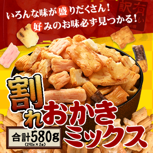 送料無料 訳あり 割れおかきミックス 580g (290g×2) お菓子 スイーツ おつまみ おやつ 常温便