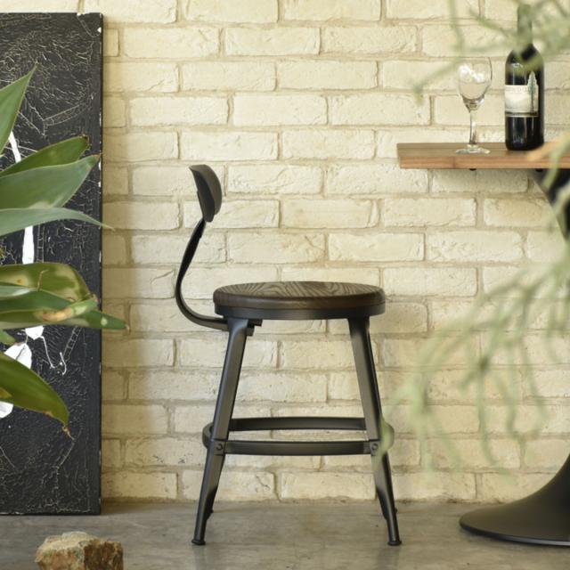 ウッドとスチールを組み合わせた、どこか懐かしさを感じるデザインのチェア。使い込んだような風合いが空間になじみつつ、インテリアのアクセントとしても映えるデザインです。ダイニングやカフェ風の空間づくりにもおすすめです。