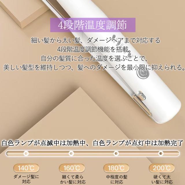 ヘアアイロン コードレス ストレートアイロン 前髪 カール 小型 両用 ミニアイロン 急速加熱 2way 4段階温度調節 USB充