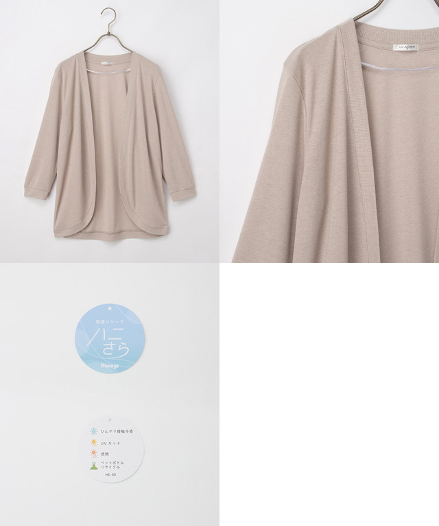 トップス カーディガン ハニさら 大きいサイズ ラウンドカーディガン 接触冷感 UVカット 遮熱 レディース Honeys ハニーズ 8分袖ラウンドカーデ