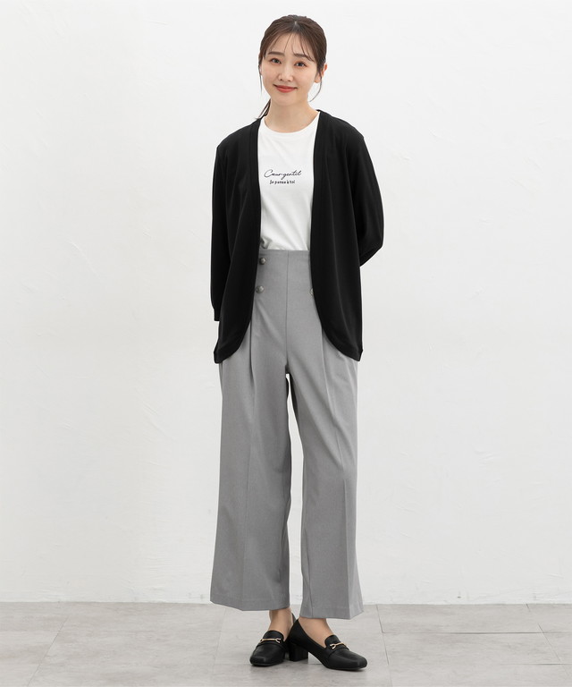 ゆったりめの幅とヒップまで隠れる丈感で体型もカバー。