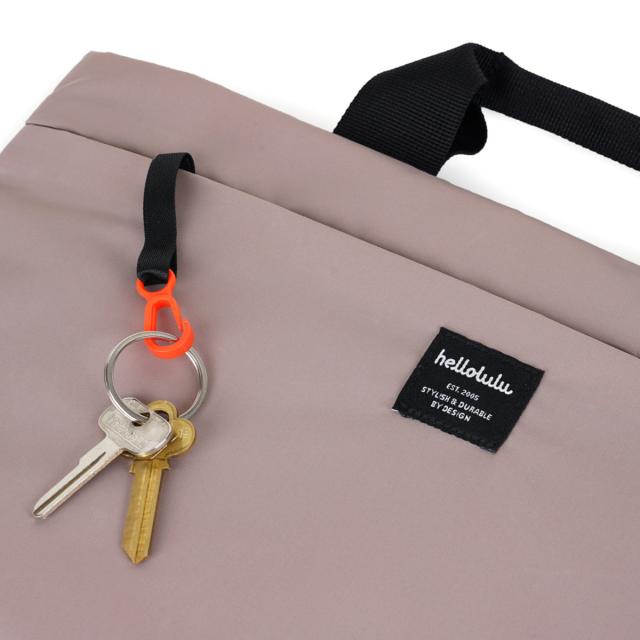 前面ポケットにはキークリップが付いています。鍵やパスケースなどを掛けておけば、バッグの中で迷子にならずさっと取り出せます。