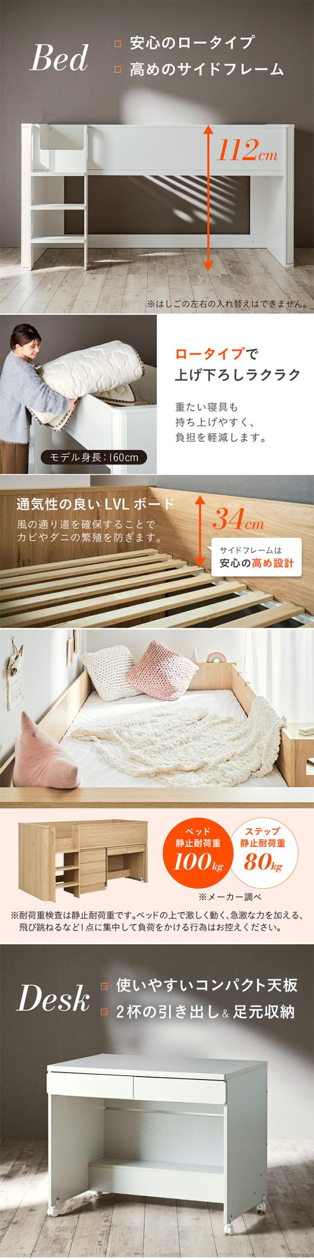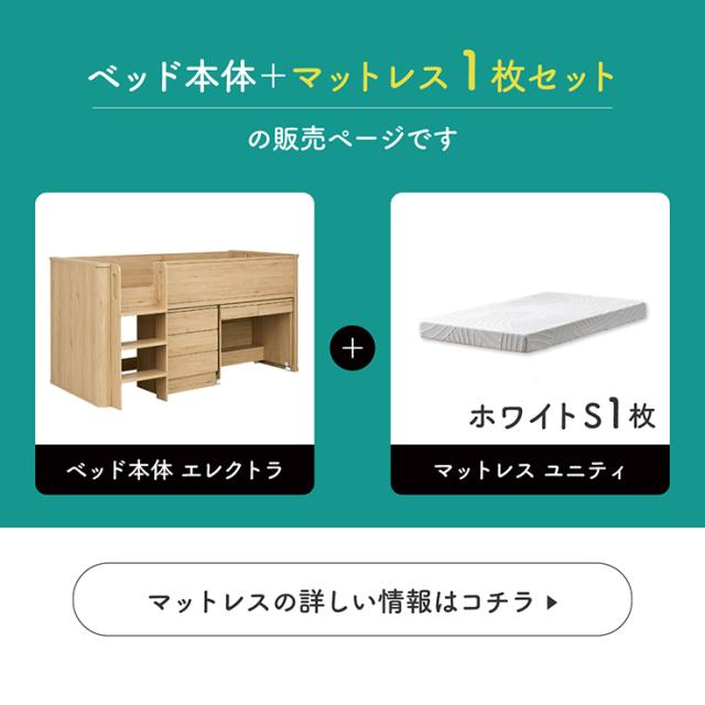 システムベッド ロータイプ 子供 大人 ロフトベッド デスク付き 机 シングル マットレス 高反発 Electra(エレクトラ) 2色対応+Unity(ユニティ) ホワイト 学習机 チェスト おしゃれ 子供部屋 敷布団