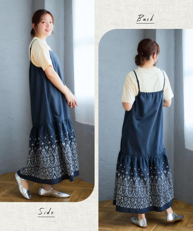 ワンピース ロング マキシ レディース 裾 プリント キャミソール 夏 ひざ下 | L/LL/3L | ニッセン nissen