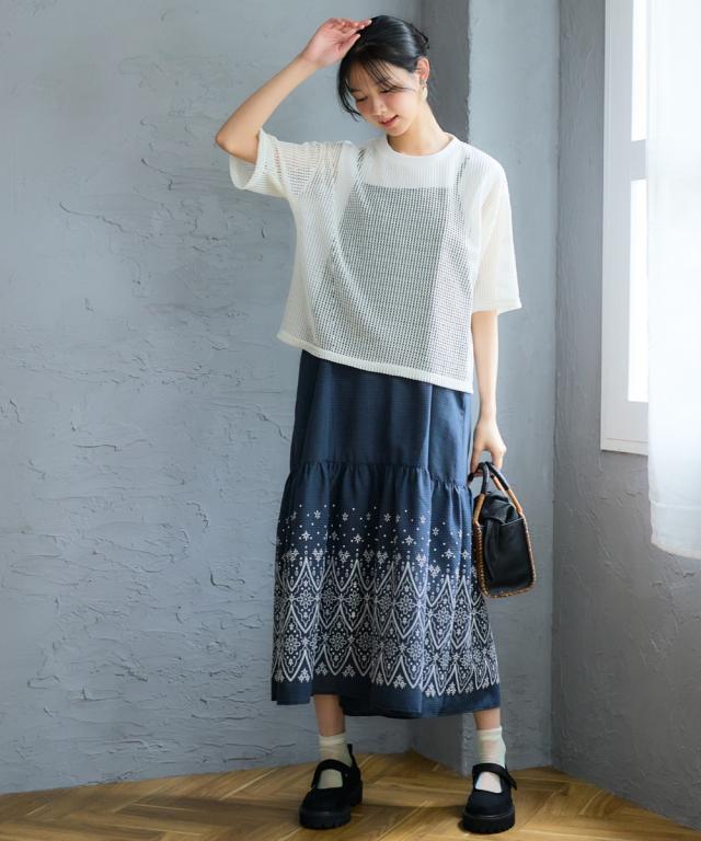 品質=綿50%・ポリエステル50% 柄の出方が多少異なる場合があります。 透け感:やや透ける ※色によって透け感が異なる場合があります。淡色カラーはベージュ系インナー着用をおすすめします。 伸縮性:なし 生地の厚み:薄い 光沢感:なし 裏地:なし ポケット:なし 季節:夏 シルエット:普通 原産国:中国製 備考:洗濯機OK ネット使用