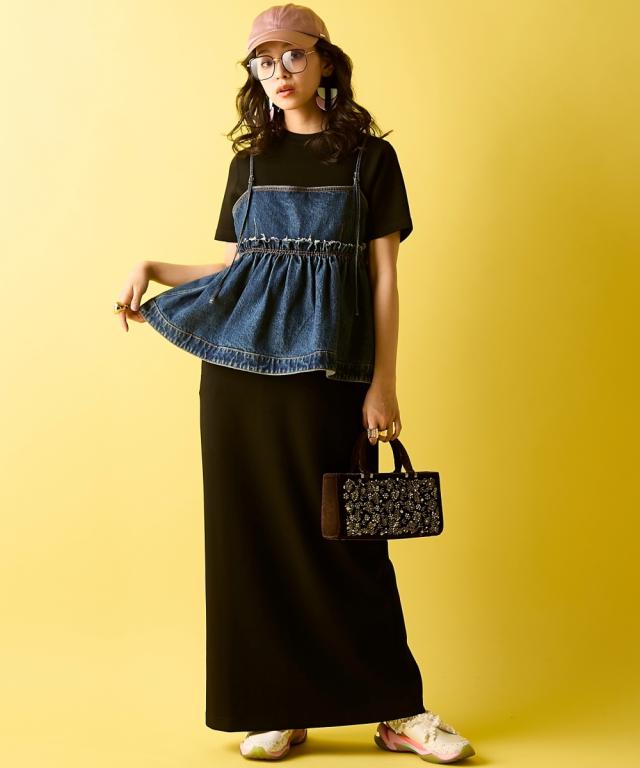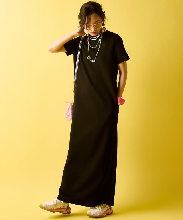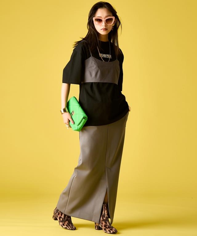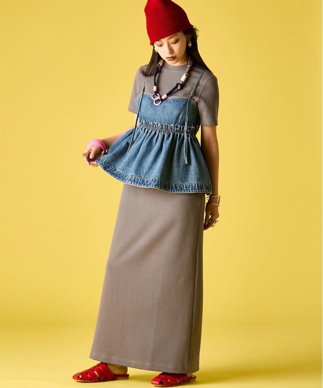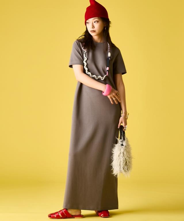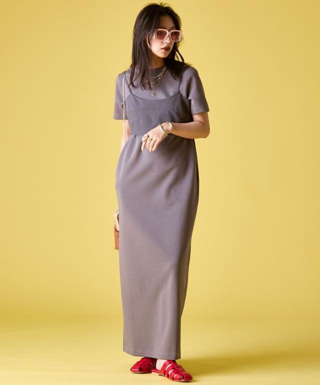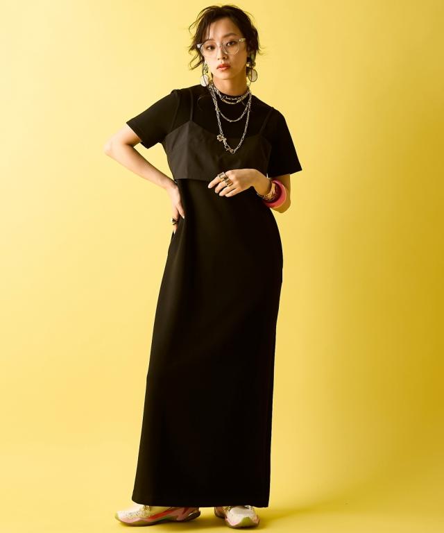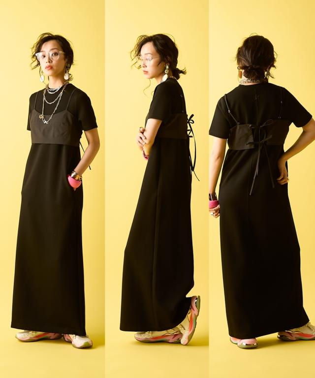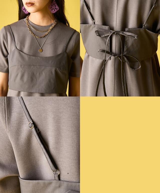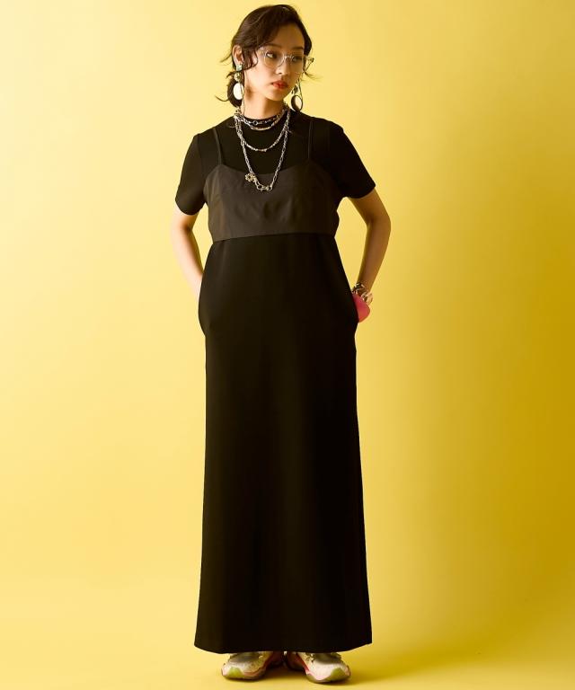 シンプルなIラインワンピースに、エッジの効いたブラトップ(ビスチェ)を重ねることで、ストリートの遊び心とモードな洗練を両立させたデザイン。 ■デザイン ベースとなるワンピースは、身体のラインを拾いすぎず、すとんと落ちるスマートなIラインシルエットを採用。 縦のラインを強調することで、フラットなスニーカーを合わせても抜群のスタイルアップを叶えます。 セットのブラトップ(ビスチェ)は、光沢のないポリエステルタフタを使用。 切り替えで作った構築的なフォルムが、シンプルなワンピースに奥行きとリズムをもたらします。 ワンピース単体での着用はもちろん、ブラトップを他のTシャツやシャツに重ねるなど、セパレートでも活躍。 シーンや気分に合わせた自由なスタイリングを可能にします。 ■素材 シルエットをきれいに出す、程よい厚みのダンボールカットソー素材を使用しました。 適度な厚みがあるため透けにくく、身体のラインを拾いにくいのがポイント。 さらりとした肌触りで、ロングシーズン快適にお召しいただけます。 セットのブラトップ(ビスチェ)は、光沢のないマットなポリエステルタフタを使用。 程よくハリ感があるので構築的なシルエットが出ます。 ■お