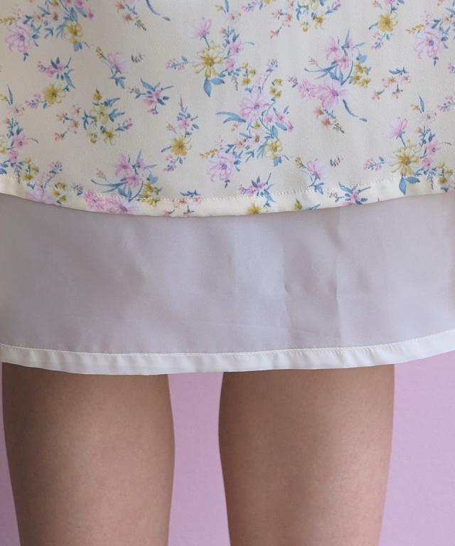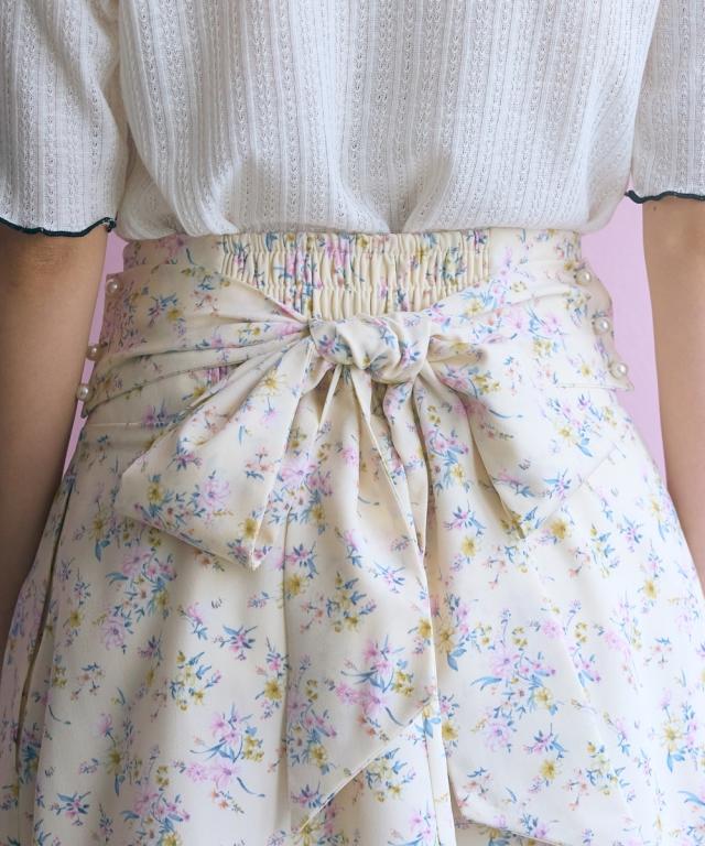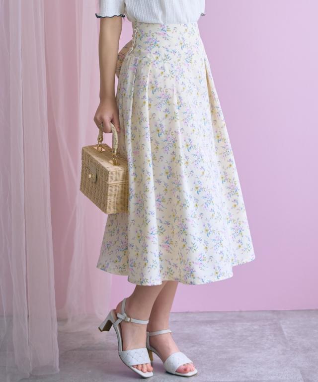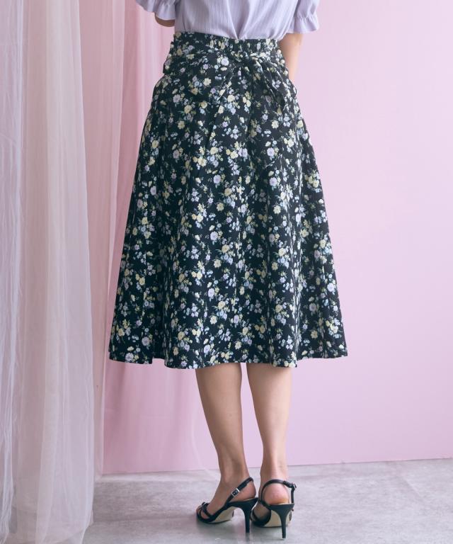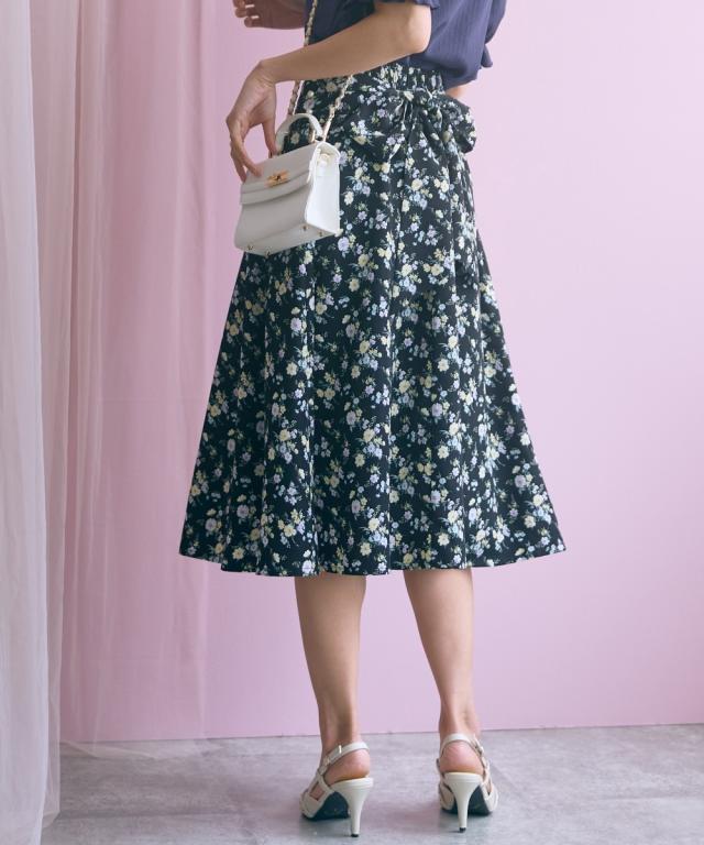 スカート ひざ丈 レディース リボン使いフラワー プリント フレア marun | 6L/8L/10L | ニッセン nissen