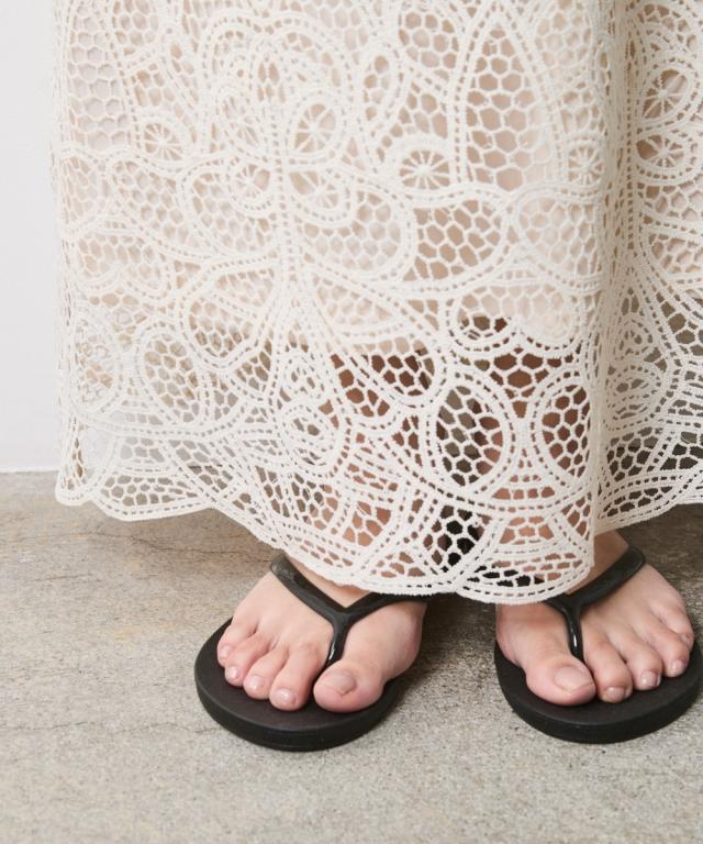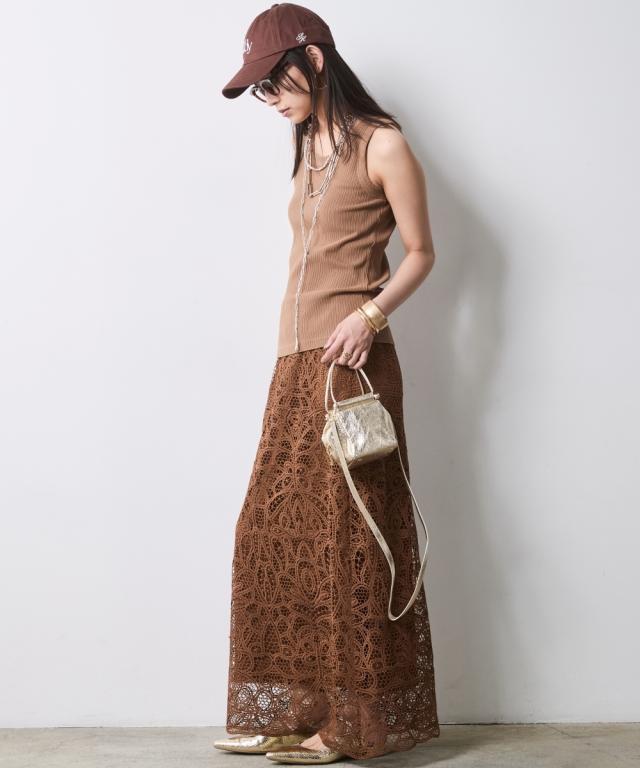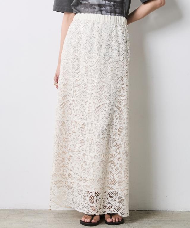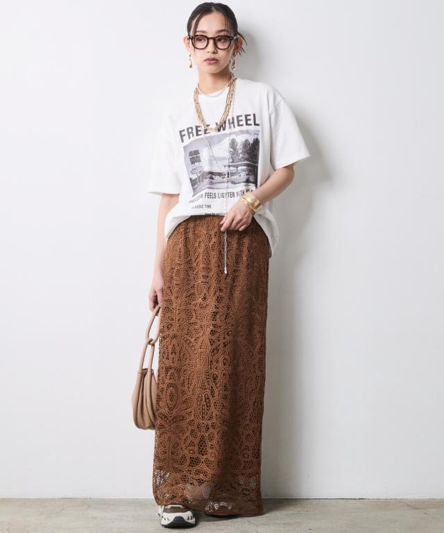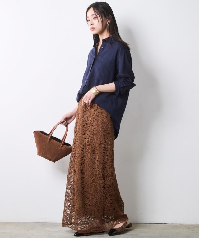 繊細な総レースが描く、大人のための贅沢な抜け感。 カジュアルを劇的に美しく変える、洗練のIライン。 ■デザイン スタイルアップを叶えるIライン、 広がりを抑えたストレートシルエットが、縦のラインを強調。 フラットシューズでも驚くほどスマートな立ち姿を演出します。 透け感を楽しむレイヤード、 膝下から覗く柔らかな肌見せが、重たくなりがちなロング丈に軽やかなリズムをプラス。 クリーンなベージュと、深みのあるモカ。 どちらも日常に溶け込みやすく、手持ちのベーシックアイテムを新鮮に蘇らせます。 ■素材 高品質な総レース素材を贅沢に使用しました。 バテンレースのような繊細な柄。 光の当たり方で表情を変え、コーディネートに高級感をもたらします。 見た目以上に軽く、肌離れの良いさらりとした質感です。 ■おすすめのスタイリング Vintage Sweet & Spicy:グラフィックプリントTシャツをタックインして、足元はスニーカーやサンダルで外して。ラフなトップスと甘いレースのコントラストが、こなれ感たっぷりの大人の遊び心を体現します。 Modern Military Mix:アウトポケットベストを羽織った、辛口なレイヤードスタイル。ベストの無骨な質感がレースの繊細さを引き立て、
